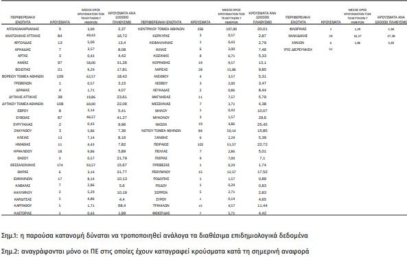 Συμπεριλαμβάνονται τόσο κρούσματα με ιστορικό ταξιδίου (εισαγόμενα) όσο και κρούσματα με πιθανή εγχώρια μετάδοση.