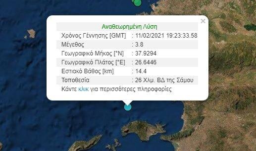 Το ακριβές επίκεντρο της δόνησης εντοπίζεται στα 26 χλμ. βορειοδυτικά της Σάμου.