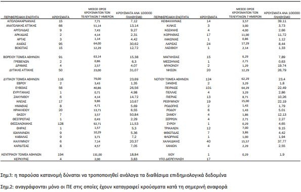 Συμπεριλαμβάνονται τόσο κρούσματα με ιστορικό ταξιδίου (εισαγόμενα) όσο και κρούσματα με πιθανή εγχώρια μετάδοση.