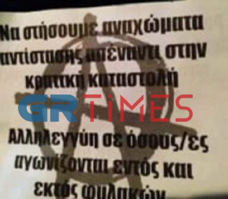 Πιο συγκεκριμένα, άτομα που ανήκουν στον αντιεξουσιαστικό χώρο, αλληλέγγυα στον απεργό πείνας Δημήτρη Κουφοντίνα, πέταξαν, σήμερα κατά τις απογευματινές ώρες, έντυπο υλικό στο πρώην στρατόπεδο Μακεδονομάχου Κόδρα στην Καλαμαριά και στη συνέχεια αποχώρησαν.
