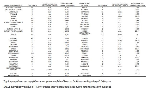 Συμπεριλαμβάνονται τόσο κρούσματα με ιστορικό ταξιδίου (εισαγόμενα) όσο και κρούσματα με πιθανή εγχώρια μετάδοση.