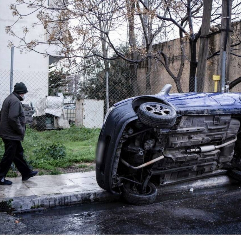 Ακόμη μια περίεργη... κλοπή συνέβη στο κέντρο της Αθήνας, με τους ληστές να τουμπάρουν κυριολεκτικά ένα αυτοκίνητο για να του κλέψουν τον καταλύτη!