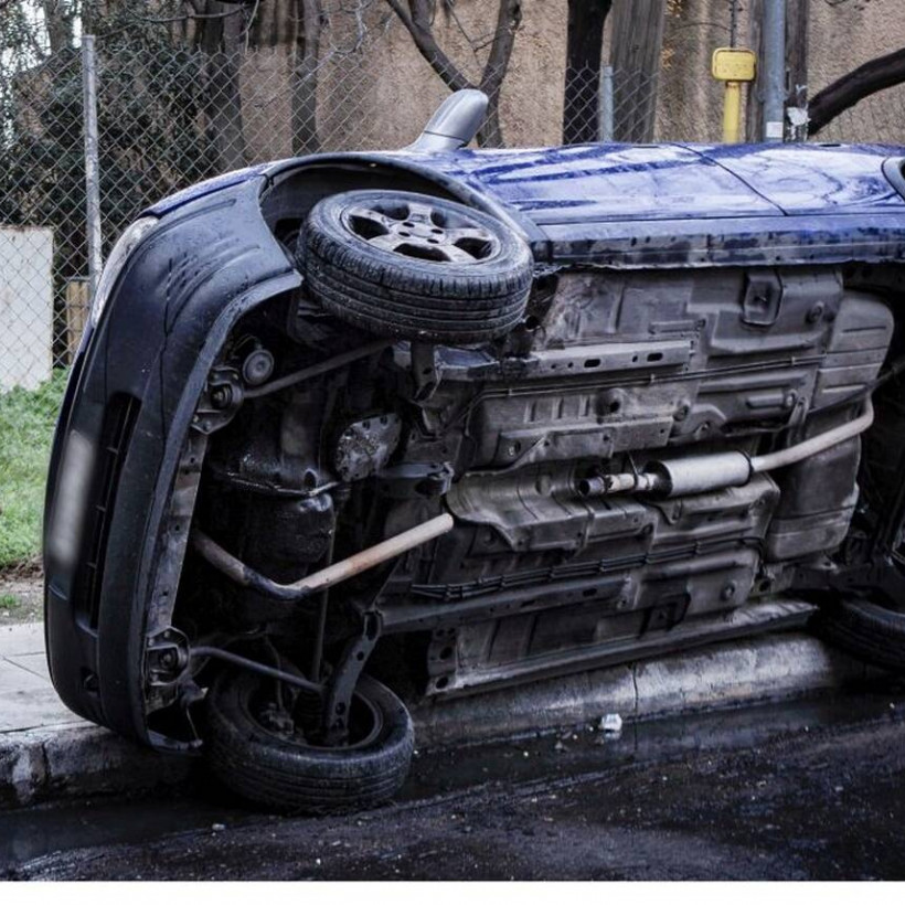 Ο φωτογραφικός φακός του Intime απαθανάτισε ένα ΙΧ αναποδογυρισμένο ενώ οι κλέφτες είχαν αφαιρέσει τον καταλύτη του.