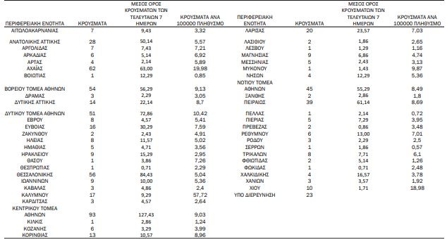 Τα κρούσματα ανά Περιφερειακή Ενότητα