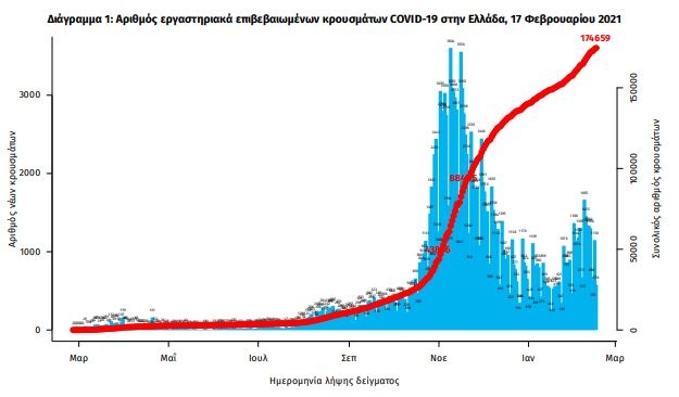 Κρούσματα σήμερα: Η πορεία της πανδημίας του κορονοϊού στη χώρα μας, όπως καταγράφεται στα επίσημα στοιχεία του ΕΟΔΥ, σήμερα Τετάρτη 17/02.