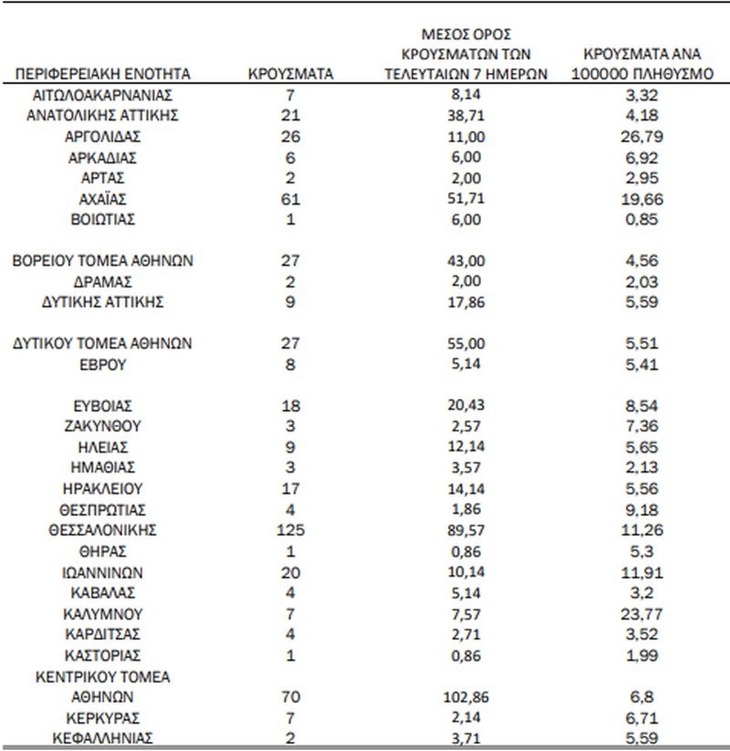 Τα κρούσματα ανά Περιφερειακή Ενότητα