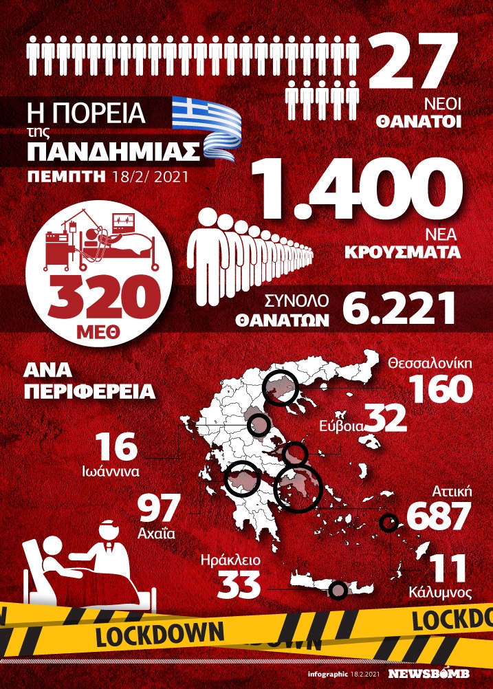 Κρούσματα σήμερα: Η ανάλυση των επιδημιολογικών δεδομένων για τον κορονοϊό που ανακοίνωσε σήμερα Πέμπτη (18.02) ο ΕΟΔΥ για την Ελλάδα.