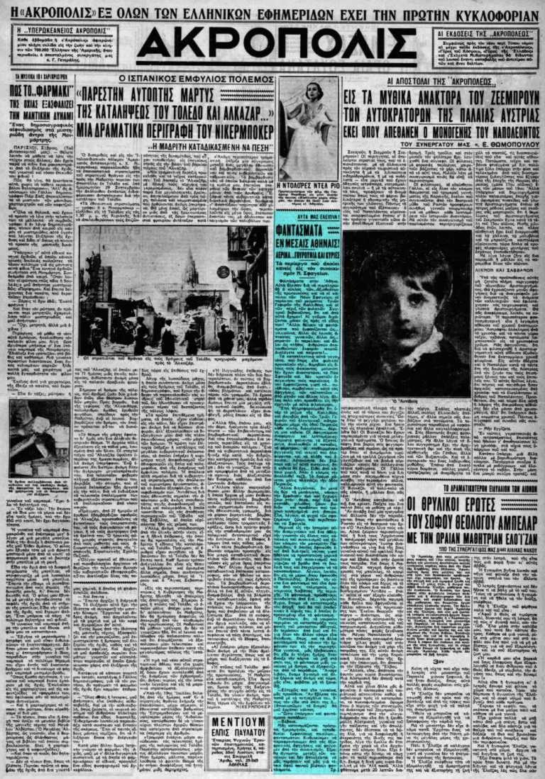 Μάλιστα, για τα φαντάσματα της οδού Πειραιώς, είχε γράψει στο πρωτοσέλιδό της η εφημερίδα «ΑΚΡΟΠΟΛΙΣ».