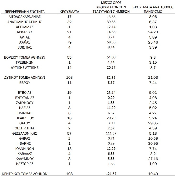 Χαρακτηριστικά είναι τα νούμερα της Κυριακής, όπου από τα 884 κρούσματα πανελλαδικά, τα 108 ήταν στο κέντρο και τα 103 στην Δυτική Αττική.