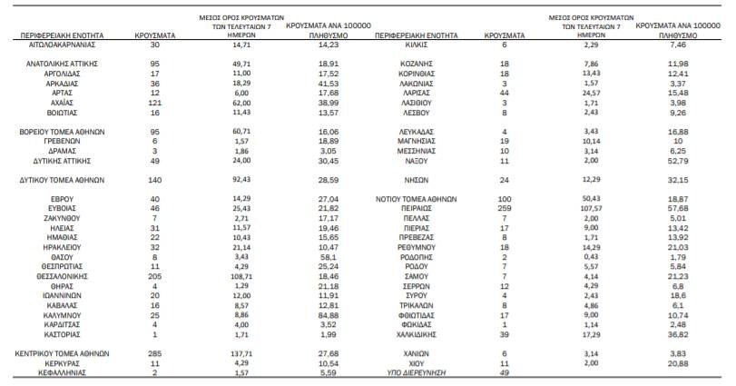 Τα κρούσματα ανά Περιφερειακή Ενότητα