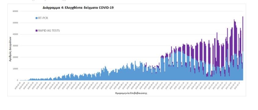 από Μονάδες Υγείας και Κλιμάκια του ΕΟΔΥ που διενεργούν ελέγχους Rapid Ag έχουν ελεγχθεί 1.474.739 δείγματα. O μέσος όρος του επταημέρου είναι 35.141 δειγματοληπτικοί έλεγχοι