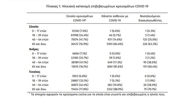 Οι νέοι θάνατοι ασθενών με COVID-19 είναι 28, ενώ από την έναρξη της επιδημίας έχουν καταγραφεί συνολικά 6.371 θάνατοι. Το 95.7% είχε υποκείμενο νόσημα ή/και ηλικία 70 ετών και άνω.