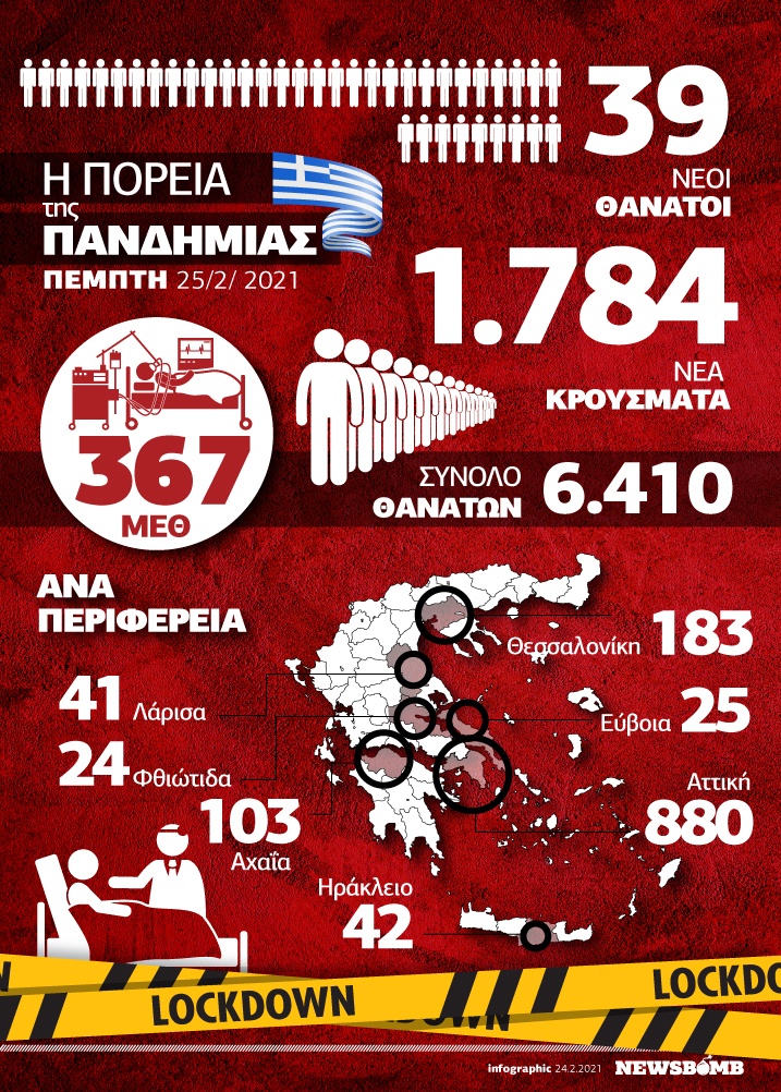 Κρούσματα σήμερα: Η ανάλυση των επιδημιολογικών δεδομένων για τον κορονοϊό που ανακοίνωσε σήμερα Πέμπτη (25.02) ο ΕΟΔΥ για την Ελλάδα.