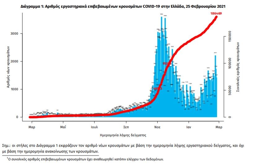 Συνολικά έχουν ταυτοποιηθεί 990 θετικά για την παρουσία μετάλλαξης Β.1.1.7/UKlineage (Variant VOC_202012) και 27 θετικά για την παρουσία μετάλλαξης B.1.351/South Africa (Variant 501V2) από την έναρξη λειτουργίας του Εθνικού Δικτύου Γονιδιωματικής Επιτήρησης για τις μεταλλάξεις του SARS-CoV-2 έως σήμερα. Τα 12 θετικά για την παρουσία μετάλλαξης Lineage B.1.351/South Africa (Variant 501V2) είναι όλα εγχώρια και όλα προέρχονται από την Περιφερειακή Ενότητα Θεσσαλονίκης. Το ένα θετικό με την παρουσία μετάλλαξης Lineage A.23.1/Uganda είναι εγχώριο και προέρχεται από την Περιφερειακή Ενότητα Κεντρικού Τομέα Αθηνών.