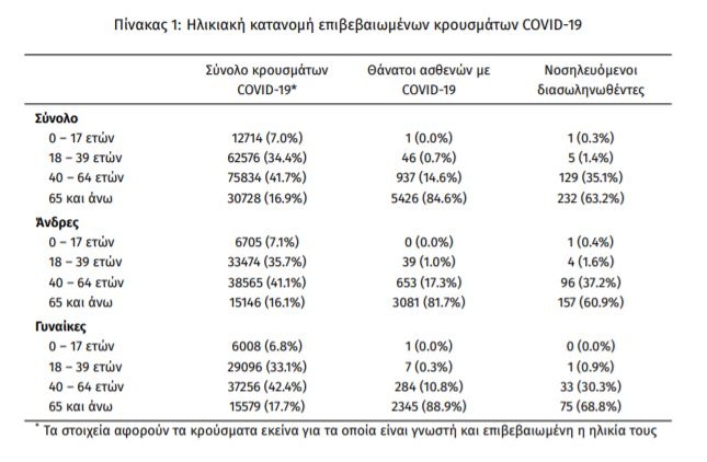 Οι νέοι θάνατοι ασθενών με COVID-19 είναι 39, ενώ από την έναρξη της επιδημίας έχουν καταγραφεί συνολικά 6.410 θάνατοι. Το 95.7% είχε υποκείμενο νόσημα ή/και ηλικία 70 ετών και άνω.