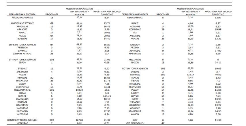 • Η Κορινθία είχε 29 κρούσματα, η αναλογία είναι στο 19,99