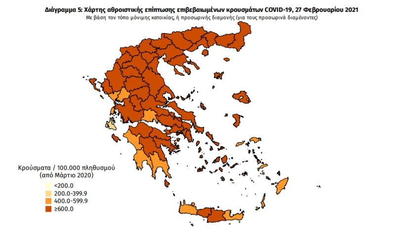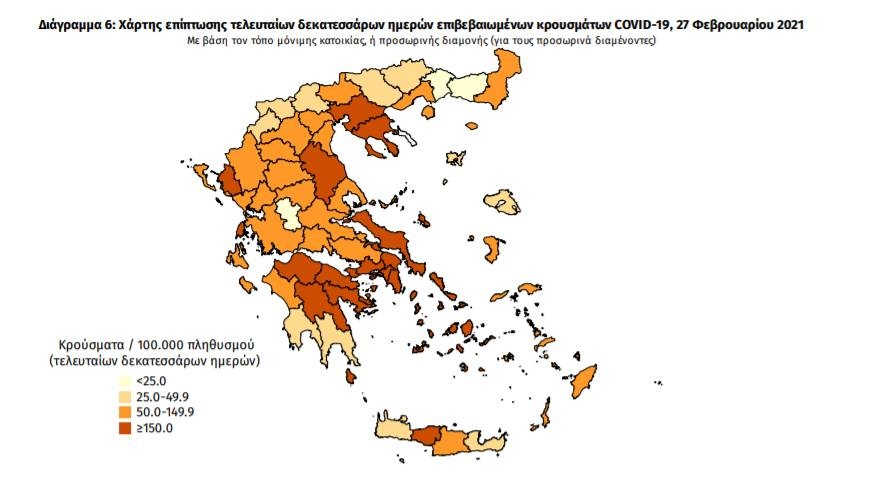 Ο επιδημιολογικός χάρτης της Ελλάδας (27.02)covid19.gov.gr/covid-map/