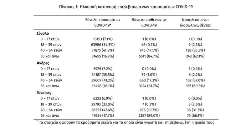 Ο αριθμός των ασθενών που νοσηλεύονται διασωληνωμένοι είναι 391 (70.6% άνδρες). Η διάμεση ηλικία τους είναι 68 έτη. To 84.4% έχει υποκείμενο νόσημα ή/και ηλικία 70 ετών και άνω. Από την αρχή της πανδημίας έχουν εξέλθει από τις ΜΕΘ 1.341 ασθενείς. Οι νέες εισαγωγές ασθενών Covid-19 στα νοσοκομεία της επικράτειας είναι 291 (ημερήσια μεταβολή -15.90%). Ο μέσος όρος εισαγωγών του επταημέρου είναι 290
