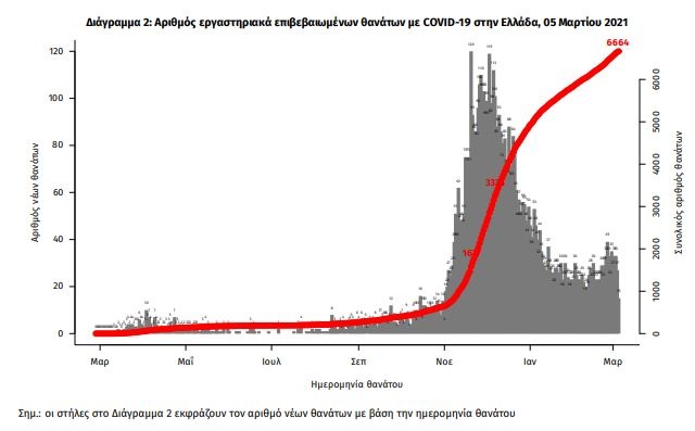 Οι νέοι θάνατοι ασθενών με COVID-19 είναι 32, ενώ από την έναρξη της επιδημίας έχουν καταγραφεί συνολικά 6.664 θάνατοι. Το 95.8% είχε υποκείμενο νόσημα ή/και ηλικία 70 ετών και άνω.