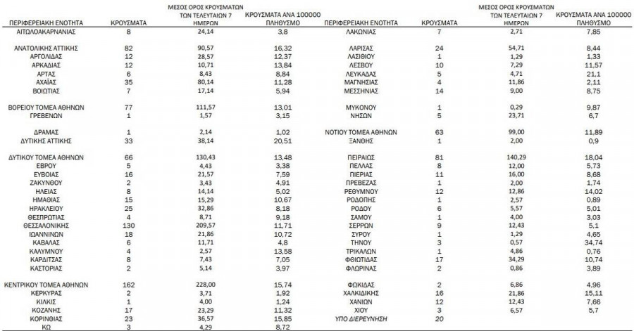 Τα κρούσματα ανά Περιφερειακή Ενότητα