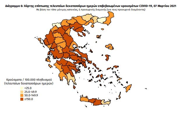 Συμπεριλαμβάνονται τόσο κρούσματα με ιστορικό ταξιδιού (“εισαγόμενα”) όσο και κρούσματα με πιθανή εγχώρια μετάδοση.