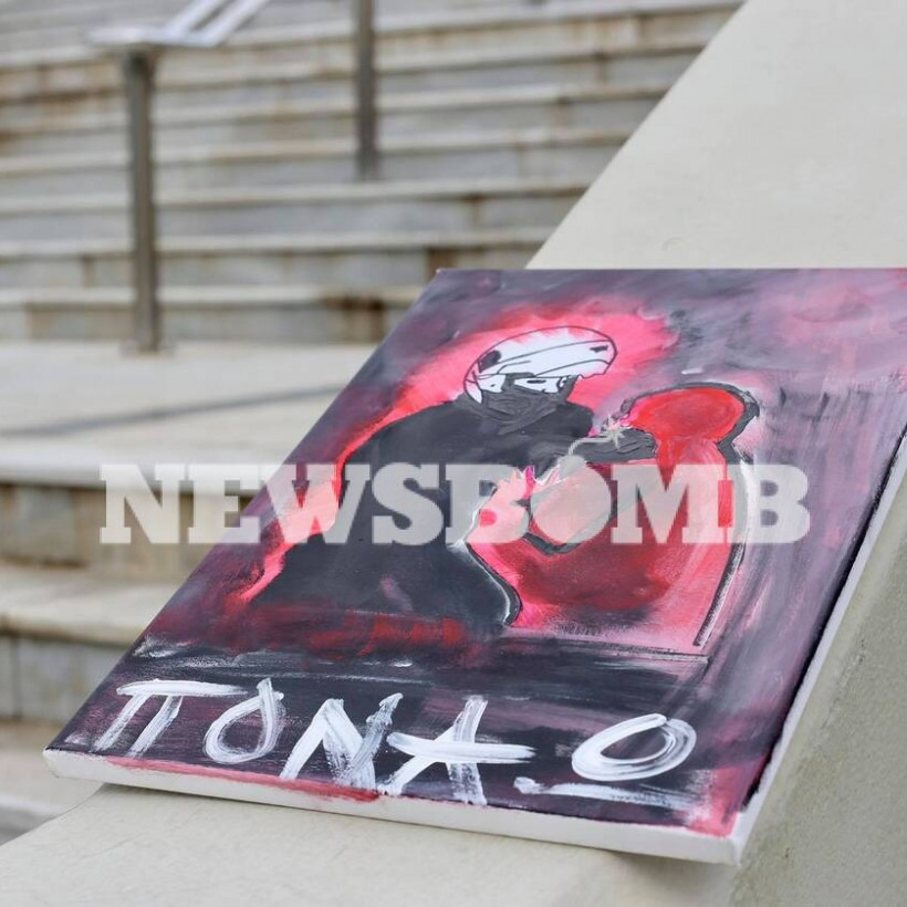 Από τη Δευτέρα ένας πίνακας ζωγραφικής τοποθετήθηκε στην πλατεία της Νέας Σμύρνης, στο σημείο που έλαβε χώρα ο ξυλοδαρμός του νεαρού από τον αστυνομικό.