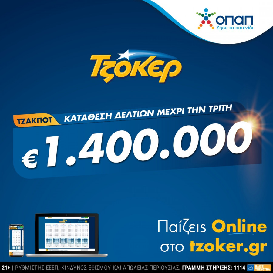 Το 2021 έχει αναδείξει ήδη έναν διαδικτυακό μεγάλο νικητή στο ΤΖΟΚΕΡ, που κέρδισε 1,6 εκατ. ευρώ. Πρόκειται για έναν παίκτη που συμμετείχε στην κλήρωση της 5ης Ιανουαρίου, με ένα δελτίο που περιείχε 9 στήλες και κόστισε 4,5 ευρώ.