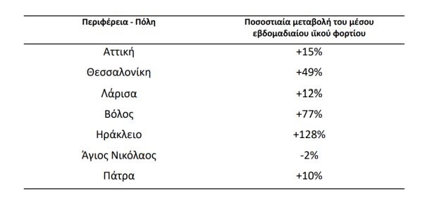 Οι αυξητικές αυτές τάσεις κυμαίνονται από +49% στη Θεσσαλονίκη έως και +128% στο Ηράκλειο Κρήτης. Οριακές κρίνονται οι αυξήσεις που παρατηρούνται στην Πάτρα (+10%), στη Λάρισα (+12%) και στην Περιφέρεια Αττικής (+15%), με το ιϊκό φορτίο στα λύματα των περιοχών αυτών να παραμένει στο ίδιο επίπεδο με αυτό της προηγούμενης εβδομάδας. Παρομοίως, η συγκέντρωση του ιϊκού φορτίου στα λύματα του Αγίου Νικολάου Κρήτης (-2%) παραμένει ουσιαστικά σταθερή, σε σχετικά χαμηλά όμως επίπεδα.