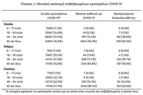 Το 95.8% είχε υποκείμενο νόσημα ή/και ηλικία 70 ετών και άνω.