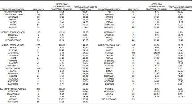 Τα κρούσματα ανά Περιφερειακή Ενότητα