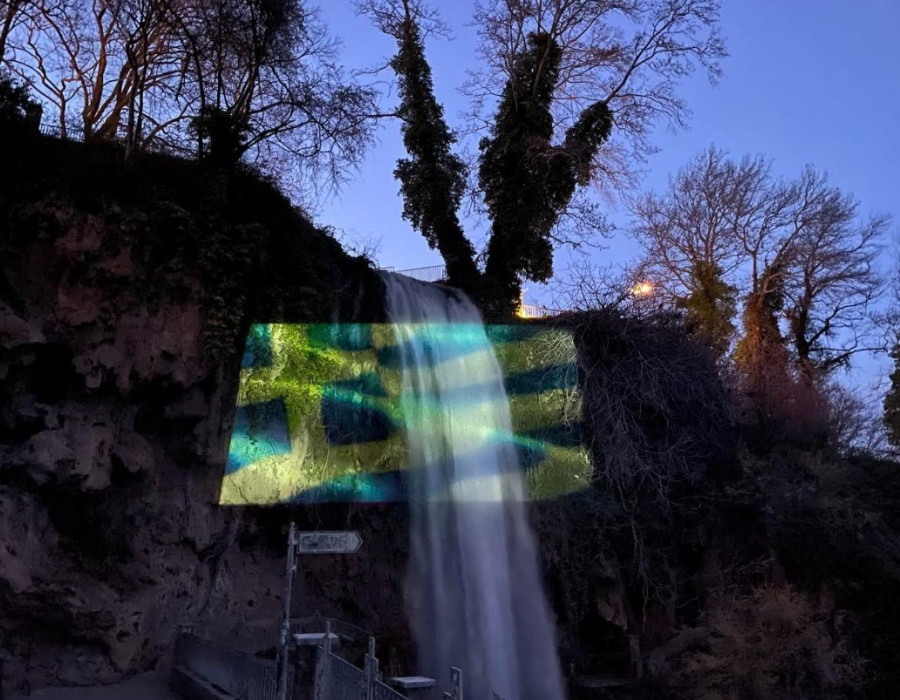 Στην Έδεσσα οι καταρράκτες φωτίστηκαν με γαλανόλευκα χρώματα.