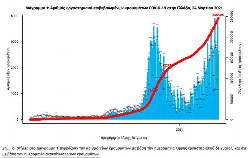 Κορονοϊός - Όλες οι ειδήσεις: Την Τετάρτη, 24 Μαρτίου 2021, ο ΕΟΔΥ ανακοίνωσε 3.062 νέα κρούσματα του νέου ιού στη χώρα, εκ των οποίων τα 10 εντοπίστηκαν κατόπιν ελέγχων στις πύλες εισόδου της χώρας.