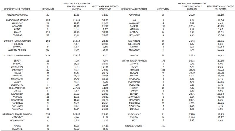 Τα κρούσματα ανά Περιφερειακή Ενότητα