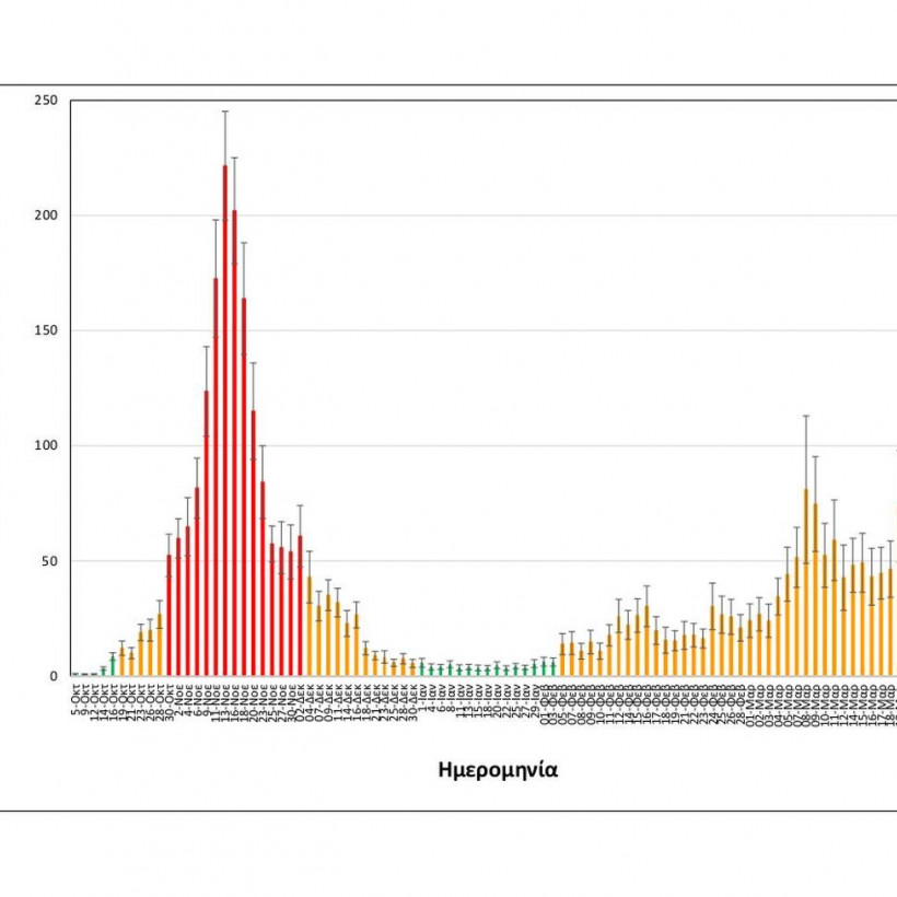 Στα συνημμένα διαγράμματα του ΑΠΘ, οι ημέρες των δειγματοληψιών που καταγράφονται με πορτοκαλί χρώμα αντιστοιχούν σε 100-400 κρούσματα (όπως ανακοινώθηκαν τις αντίστοιχες ημέρες από τον ΕΟΔΥ) και οι μέρες που καταγράφονται με πράσινο, σε λιγότερα από εκατό ανακοινωμένα επιβεβαιωμένα κρούσματα.