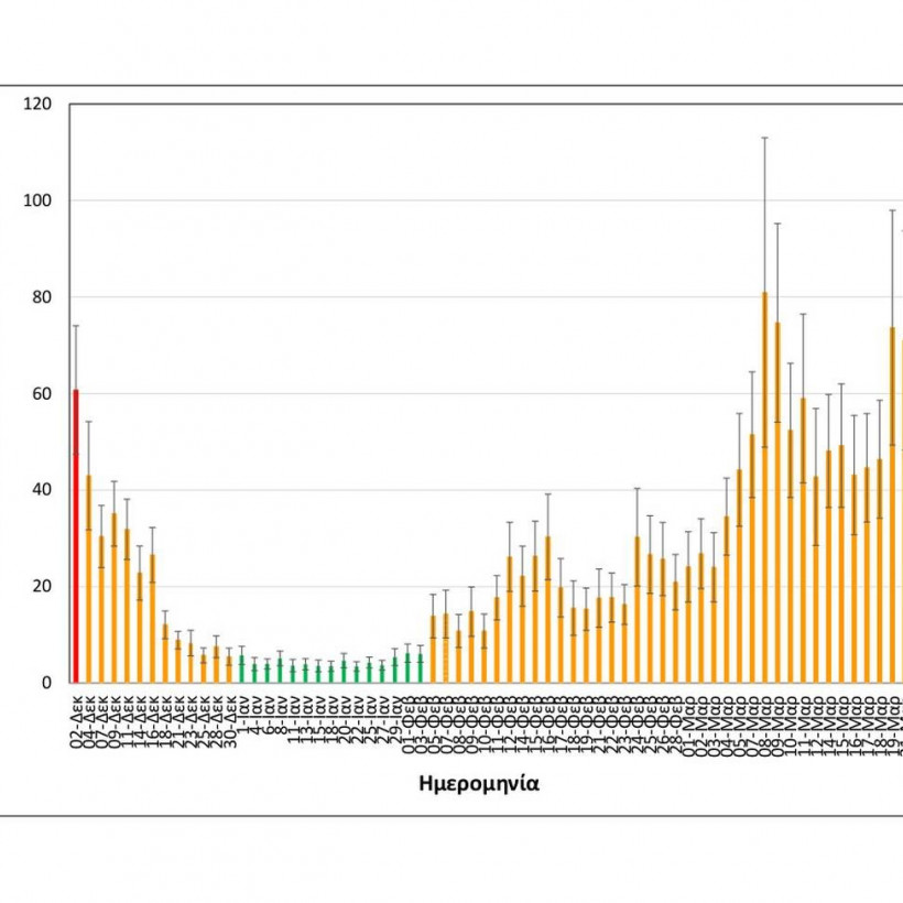 Συγκεκριμένα, η μέση τιμή των δύο πιο πρόσφατων μετρήσεων, δηλαδή της Δευτέρας 22/03 και της Τρίτης 23/03 είναι: