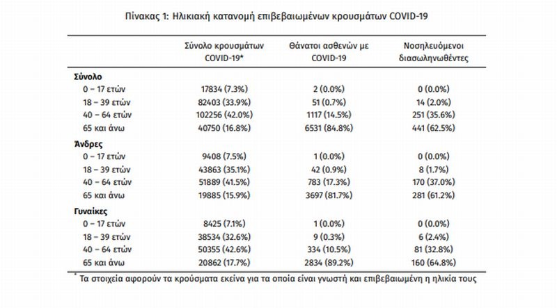 Ηλικιακή Κατανομή κρουσμάτων, νοσηλευόμενων στις MEΘ και ασθενών που απεβίωσαν από την αρχή της πανδημίας