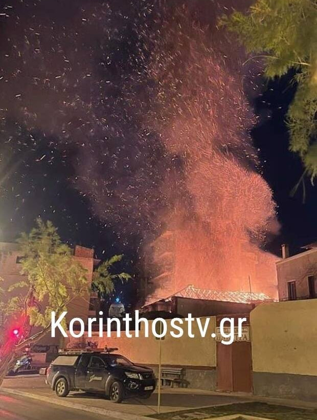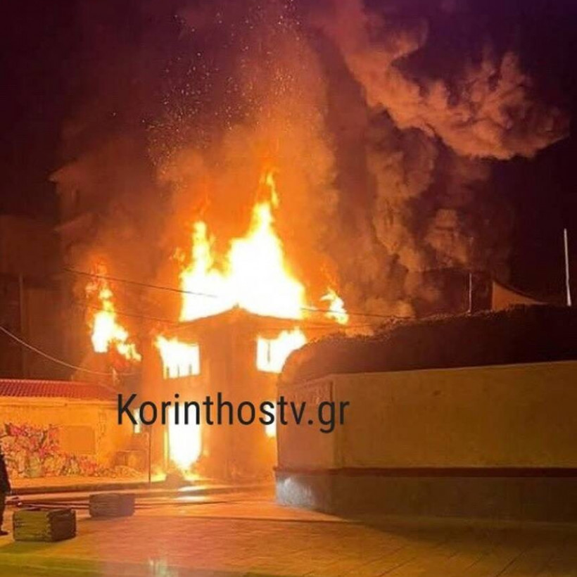 Στις φλόγες τυλίχθηκε το βράδυ της 25ης Μαρτίου ένα διώροφο κτήριο στο κέντρο του Ξυλόκαστρου.