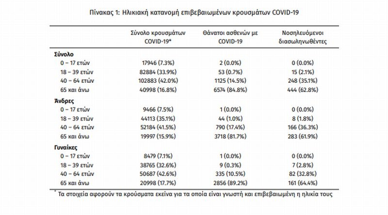 Οι νέοι θάνατοι ασθενών με COVID-19 ήταν 53, ενώ από την έναρξη της επιδημίας έχουν καταγραφεί συνολικά 7.754 θάνατοι. Το 95.7% είχε υποκείμενο νόσημα ή/και ηλικία 70 ετών και άνω.