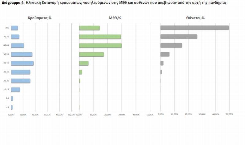 Ηλικιακή Κατανομή κρουσμάτων, νοσηλευόμενων στις MEΘ και ασθενών που απεβίωσαν από την αρχή της πανδημίας