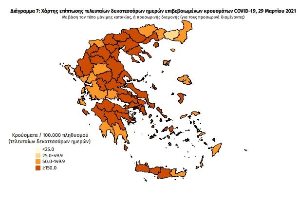 Συμπεριλαμβάνονται τόσο κρούσματα με ιστορικό ταξιδιού (“εισαγόμενα”) όσο και κρούσματα με πιθανή εγχώρια μετάδοση.