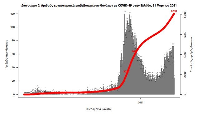 Οι νέοι θάνατοι ασθενών με COVID-19 είναι 76, ενώ από την έναρξη της επιδημίας έχουν καταγραφεί συνολικά 8.093 θάνατοι. Το 95,7% είχε υποκείμενο νόσημα ή/και ηλικία 70 ετών και άνω.