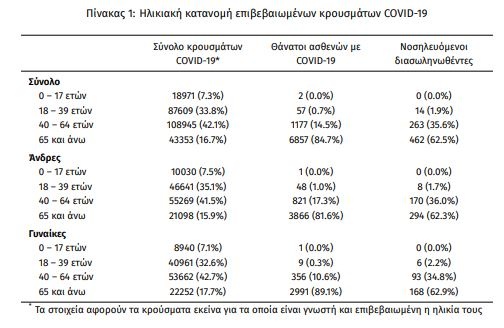 Το 95.7% είχε υποκείμενο νόσημα ή/και ηλικία 70 ετών και άνω.