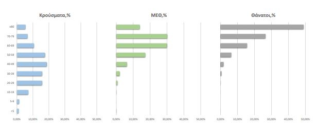 Η ηλικιακή Κατανομή κρουσμάτων, νοσηλευόμενων στις MEΘ και ασθενών που απεβίωσαν από την αρχή της πανδημίας:
