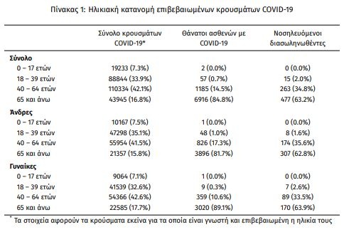 Το 95.7% είχε υποκείμενο νόσημα ή/και ηλικία 70 ετών και άνω.