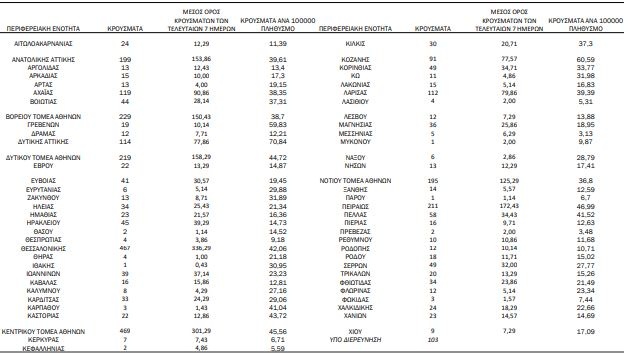 Τα κρούσματα ανά Περιφερειακή Ενότητα