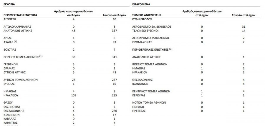 Συνολικά έχουν ταυτοποιηθεί 3.373 θετικά για την παρουσία μετάλλαξης Β.1.1.7/UK lineage (Variant VOC_202012) (Πίνακας 4) και 59 θετικά για την παρουσία μετάλλαξης B.1.351/South Africa (Variant 501.V2) από την έναρξη λειτουργίας του Εθνικού Δικτύου Γονιδιωματικής Επιτήρησης για τις μεταλλάξεις του SARS-CoV-2 έως σήμερα. Από τα 59 θετικά στελέχη για την παρουσία μετάλλαξης Lineage B.1.351/South Africa (Variant 501.V2) τα 57 είναι εγχώρια, εκ των οποίων 47 προέρχονται από την Περιφερειακή Ενότητα Θεσσαλονίκης, 2 από την Περιφερειακή Ενότητα Ιωαννίνων, 5 από την Περιφέρεια Αττικής, 1 από την Περιφερειακή Ενότητα Αιτωλοακαρνανίας, 1 από την Περιφερειακή Ενότητα Ηρακλείου και 1 από την Περιφερειακή Ενότητα Χανίων.