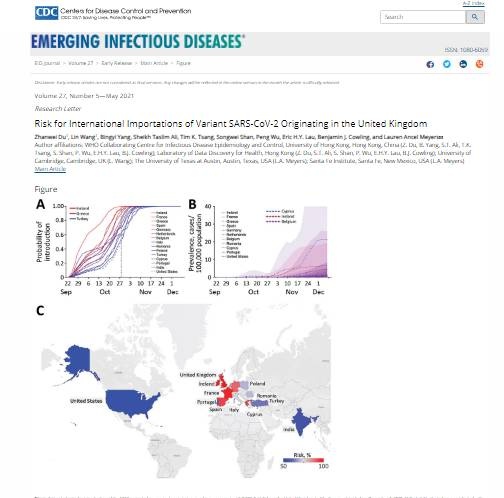 Η μελέτη συνδύασε εκτιμήσεις για την διάδοση του B117 στη Βρετανία με δεδομένα του Facebook για διεθνή ταξίδια σε 15 χώρες προκειμένου να εκτιμήσει την πιθανότητα να είχε φτάσει το νέο στέλεχος στις χώρες αυτές πριν από τις 7 Δεκεμβρίου 2020.