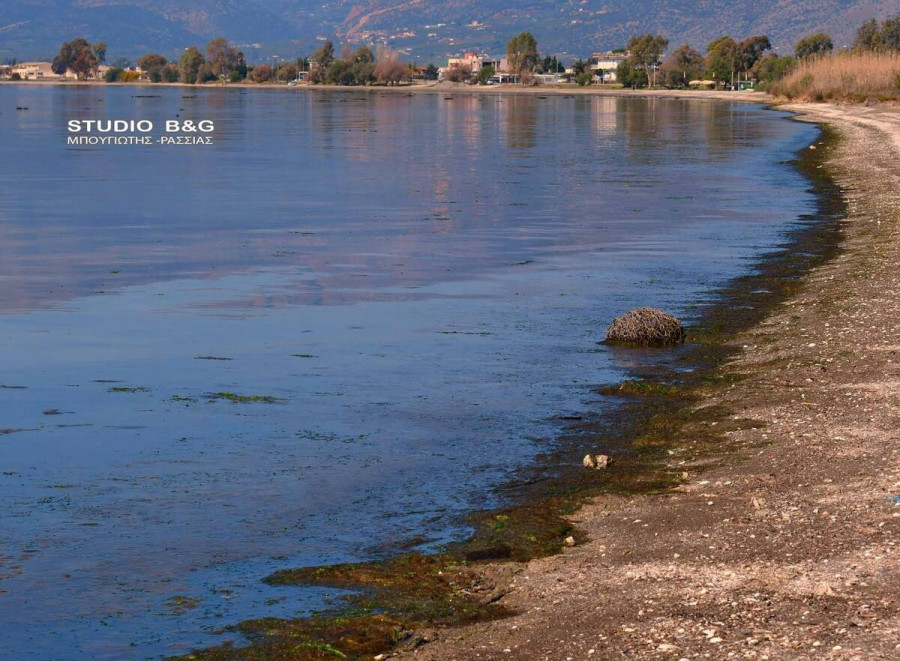 Μεγάλες ποσότητες κόκκινης παχύρρευστης ουσίας έχει κατακλύσει την παραλιακή περιοχή Ναυπλίου Νέας Κίου στην Αργολίδα.