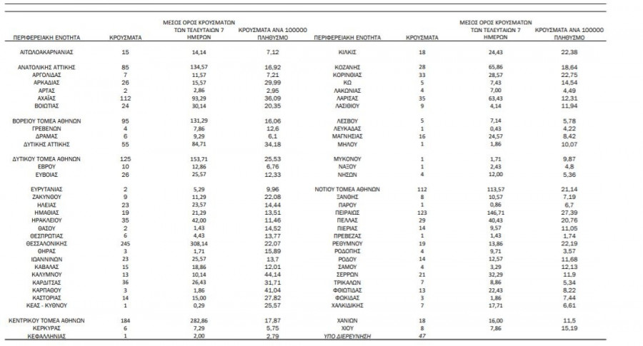 Τα κρούσματα ανά Περιφερειακή Ενότητα