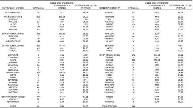 Με βάση τα επιβεβαιωμένα κρούσματα των τελευταίων 7 ημερών, 94 θεωρούνται σχετιζόμενα με ταξίδι από το εξωτερικό και 2.773 είναι σχετιζόμενα με ήδη γνωστό κρούσμα.